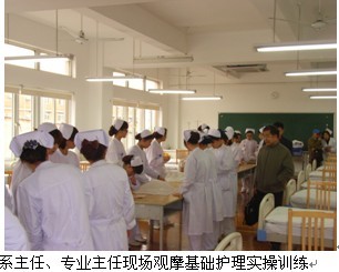 护理系领导和老师们做了精心准备,整个活动形式多样、内容丰富、紧凑有序。通过现场观摩学生早读、理论教学、实践教学,进一步展示了什么叫融“教、学、做”于一体的教学模式和如何实现融“教、学、做”为一体的目标。教室、寝室和实训场馆的管理,营造了良好的校园学习氛围。护理系主任、理论教师、实训教师、辅导员的现身说法给大家留下了深刻的印象,与会者被护理系团队高度的责任意识、执着的奉献精神和严谨的部队作风深深感染。