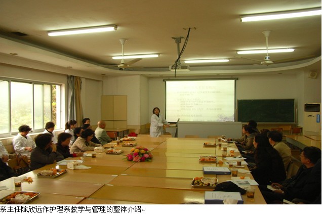 最后谢院长做了总结发言:她说从整个的参观、汇报介绍等可以看出护理系整个内部管理非常好,要求各系部:1、首先要向他们学习三个精神:团队精神、工作认真负责精神、爱护培养青年教师精神;2、他们做到了三个到位:(1)教学计划管理到位(2)教学质量管理到位:主要是严把关(依靠两个制度:专家督导、集体备课)和抓好实践教学(实训大纲、实训日志、信息跟踪到位)(3)学生管理工作到位,体现在四个紧密结合:养成教育与职业教学结合、学校教育与家长教育结合、教师教育与学生互助结合、现场教育与信息平台结合。