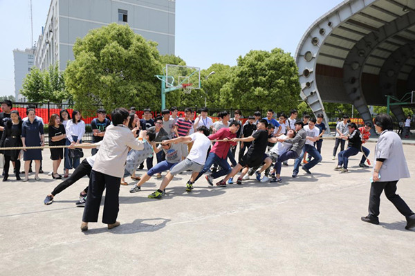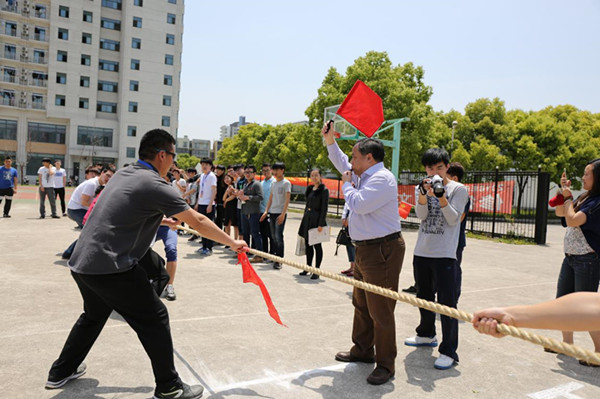 李永盛院长宣布比赛开始并吹响了本次运动会也是拔河比赛的第一哨。听闻哨声响起,参赛队员们紧握长绳,奋力后拉,哨子声、呐喊声此起彼伏,现场激烈的比赛将整个活动推到了高潮。除了拔河比赛,运动会还包括跳绳、同心鼓、背后投准几个项目。比赛中队员们积极投入,啦啦队不住呐喊,学校领导也加油助阵。
