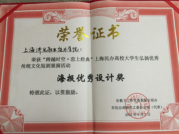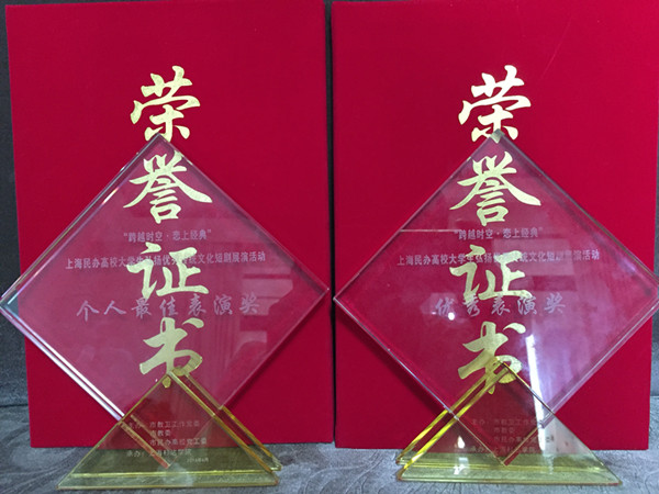 6月7日,我院话剧社参加了在上海杉达学院谢希德堂举行的“跨越时空,恋上经典”上海民办高校大学生弘扬优秀传统文化短剧展演活动,参赛剧目《宋江打虎》获“优秀表演奖”。其中,在剧中饰演“吴用”的顾文浩同学凭借精湛的演技获得“个人最佳表演奖”。我院团委宣传部设计的《宋江打虎》短剧海报获得了“海报优秀设计奖”。本次短剧展演活动充分展示了各校学子风采,弘扬了中华传统文化。
