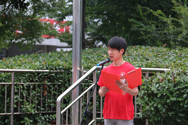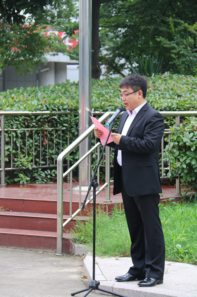 仪式由学工部副部长刘紫光老师主持,他首先介绍了本次升旗宣誓仪式的背景和重要意义。随后,在全体师生的注目下、伴随着庄严的国歌,英姿飒爽的国旗护卫队将五星红旗冉冉升起,让在场的每一个人都激荡起对祖国无限的热爱和崇高的敬意。