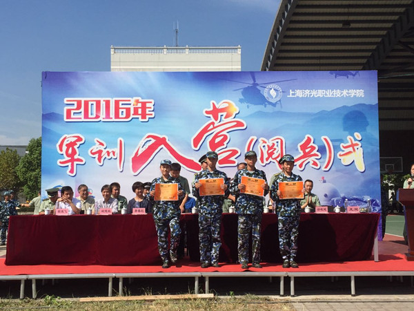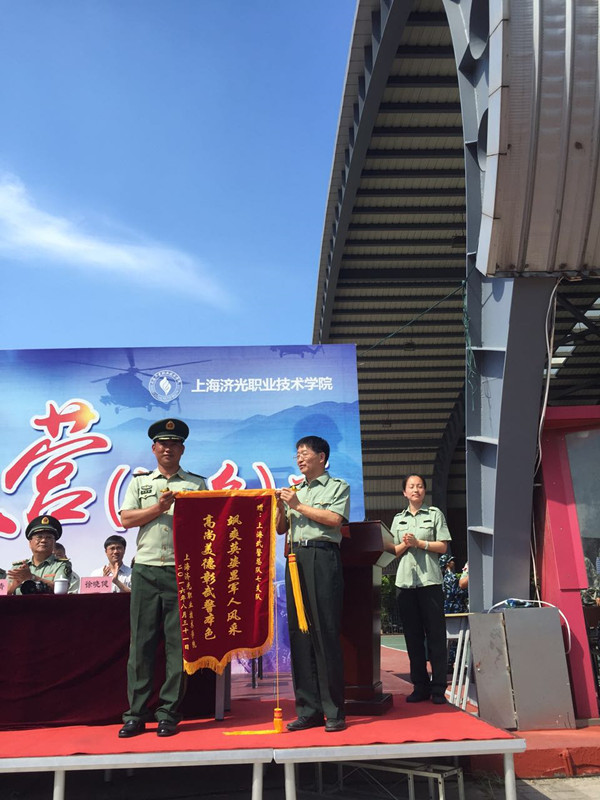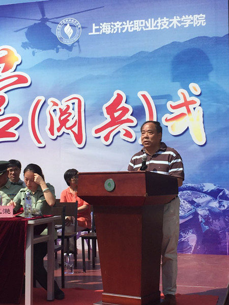 8月31日上午,我院2016年军训阅兵式在风雨操场隆重举行。宝山区武装部部长卢建兵大校、武警上海总队七支队,军训团团长徐晓健上尉、上海国防教育委员会常务理事长张国清教授、杨行镇副镇长唐春红、院领导、各院系及职能部门负责人出席阅兵式,阅兵式还邀请了部分参训学生家长共同观看军训成果。