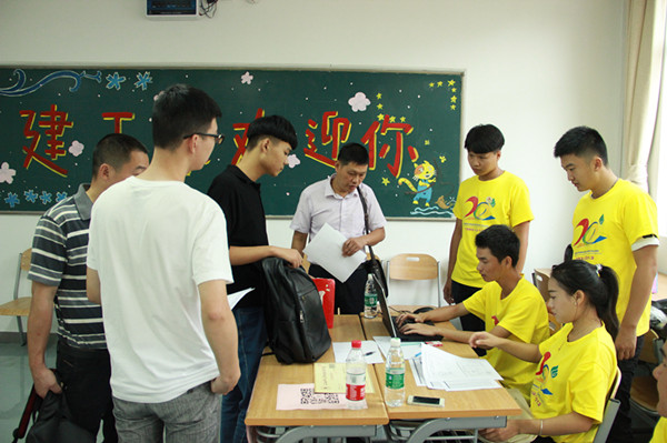 除了学校职能部门的热情接待外,各学院的迎新活动也是各具特色。建筑系的迎新场地摆满了建筑系学长学姐的作品,布艺画、手绘建筑图等帮助新生更快了解彰显了专业特色;机电系在汽车营销中心举行了家长见面会,与新生家长建立了良好的沟通。