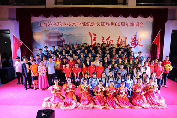 学院于10月21日晚举行了纪念红军长征胜利80周年演唱会《长征组歌》,由各院系组成的合唱团唱响五大乐章,献上了一场视听盛宴,歌颂革命情怀。党委书记祁学银、副院长姚健敏、副院长胡展飞与全院师生共同观看演出。活动中心中庭灯光璀璨,舞台后的背景板上,会师门巍然伫立,漫山的鲜花装点着坚实的城墙,寓意着长征精神世代永传。
