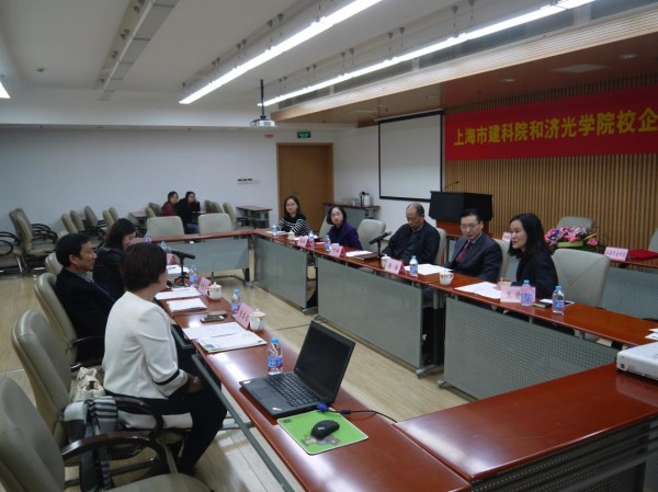 副院长胡展飞与徐强总工签订了校企合作框架协议。在签约正式开始前,双方就校企合作框架内容展开了讨论。上海建科集团徐强总工程师介绍了建科院集团近年来业务发展重点领域,以及与我院的合作前景。胡展飞副院长从哲学角度深层次解读了绿色建筑,并希望将来依托上海建科院,让我院绿色建筑学科建设发展更为壮大。双方共同希望校企合作继续开展并进一步深化。