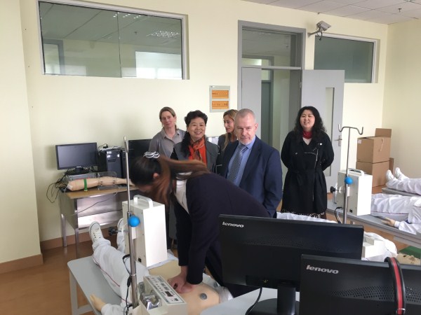 金庆跃院长与Nigel Harrison分别介绍了济光护理学院与英国中央兰开夏大学的基本情况,Nigel Harrison重点就健康照护学院的专业和学制学历情况进行介绍。紧接着,就中英双方的学历对接、合作模式、课程引进、双方教师的培训、科研合作、语言培训等问题双方进行了详细交谈。随后,在金院长的带领下,Nigel Harrison等一行人参观了我院助产综合实训室与基础护理综合实训室并表示,我院课程设置与实训室的设置理念与该校紧密同步,这也为双方的合作办学打下了十分扎实的基础。最后,Nigel Harrison等一行人与我院意向留学的学生见面交流,气氛十分愉悦。