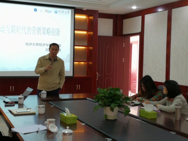 吴泗宗教授本人的讲座则将本次培训推向了高潮。被誉为营销大师的吴泗宗教授是中国市场协会的常务理事、上海市市场营销学会常务副会长、同济大学教学名师。吴泗宗教授在其《移动互联网时代的营销策略》的讲座中,用幽默风趣的语言、丰富的历史知识、深刻的哲学理念,结合国内外企业最新案例和姜堰地区产业经营战略、企业文化、人才储备等现状,将互联网时代企业的营销策略通过层层分析和解剖,让学员们明晰了企业营销从1.0到3.0之间的发展和区别,并着重讲述了3.0时代该如何进行战略转型的关键要点。他用专业博学的知识让在场的经管系教师和公司高层享用了一趟丰盛的文化大餐。
