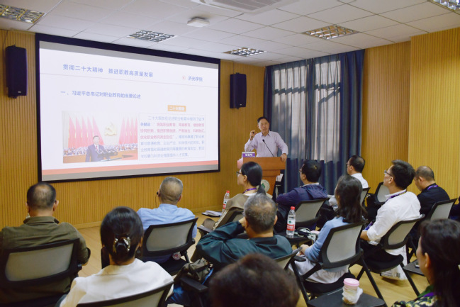 为深入推进与同济大学的党建共建工作,进一步助推两校在双向服务中形成共为,10月19日下午,校党委书记姜富明应邀以“贯彻党的二十大精神 推进高职教育高质量发展”为题在宝山校区图书馆多功能视听室为同济大学组织的“2023年古田县党外干部和职教社社员代表培训班”全体学员作专题报告。