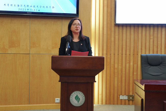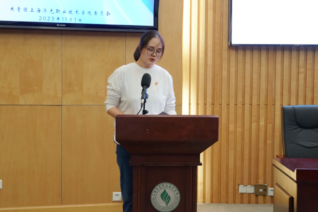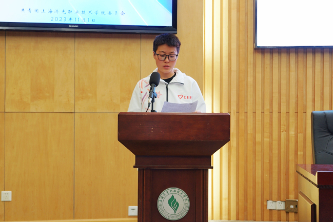 由党委学工部部长毛燕静老师宣读《关于成立上海济光职业技术学院第六届中国国际进口博览会志愿者临时团组织的通知》,宣布成立第六届中国国际进口博览会上海激光职业技术学院志愿者临时团支部,任命张海婷同志为支部书记,任命罗锦程同志、许博焜同志为支部委员。