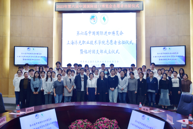 11月1日,上海济光职业技术学院第六届中国国际进口博览会志愿者出征仪式在我校圆形会议厅举行,校党委副书记刘丽、学工部部长毛燕静、团委书记邓婷婷,各二级学院党总支书记以及各二级学院分团委书记和“小叶子”志愿者们共同出席仪式。
