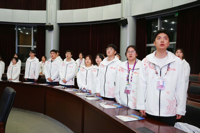 “为进博,一起来!向前进,博青春!”在本届“小叶子”代表2022级护理专业金志成同学的领誓下,济光“小叶子”们庄严宣誓。洪亮的誓言声传达出志愿者们坚定的决心,济光“小叶子”们必能全力以赴,以自身微薄之力,聚星为光,服务进博,在岗位服务中绽放属于济光“小叶子”的青春风采!