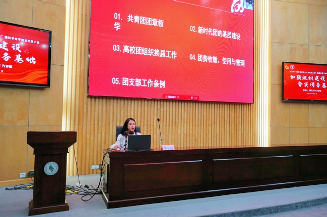 齐梦瑶老师以《加强组织建设,夯实团务基础》为主题引导同学们加强对团务知识的理解,她通过三个团务知识问题引出本次课程主要内容团的组织工作,从共青团的章领学,新时代团的建设,高校组织换届工作,团费收缴、使用与管理,团支部工作条例五个部分进行了详细的讲解。
