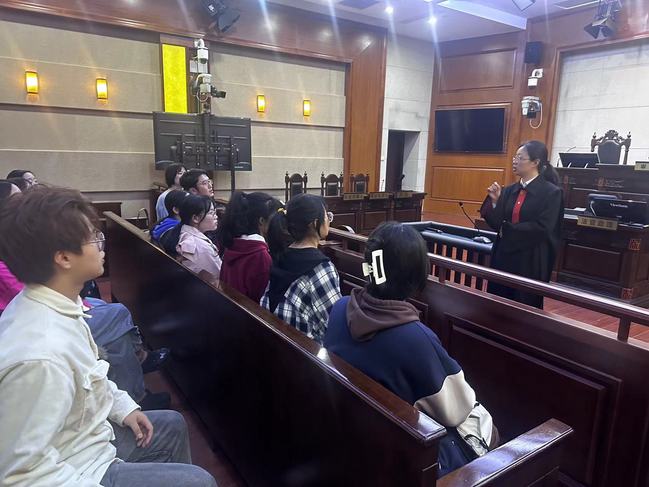 在法官和工作人员的引导下,师生们有序走进庄严肃穆的审判庭,在旁听席就座。庭审中,各方当事人围绕事实认定、法律适用等争议焦点进行质证和辩论,庭审过程规范严谨、顺畅高效。师生们全神贯注地观摩了包括法庭调查、举证质证、法庭辩论、原被告最后陈述等在内的全部庭审过程,近距离感受到了法律的威严。