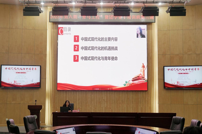 宋艳华教授引用了党的二十大报告中关于“新时代新征程中国共产党的使命任务”部分,党的二十大报告明确提出:从现在起,中国共产党的中心任务就是团结带领全国各族人民全面建成社会主义现代化强国、实现第二个百年奋斗目标,以中国式现代化全面推进中华民族伟大复兴。宋艳华教授从历史发展的角度向学员们讲解了“中国式现代化”的提出过程,以及中国新时代十年对“中国式现代化”这一进程的成功推进和拓展,并通过中国式现代化的中国特色、本质要求、重大原则、战略安排具体解读了中国式现代化的主要内容。宋艳华教授在第二部分关于中国式现代化的机遇挑战,深刻分析了目前我国发展不平衡不充分的难题,帮助学员认识到打赢关键核心技术攻坚战首要任务是加快实现“卡脖子”关键核心技术突破。在第三部分中国式现代化与青年使命中宋艳华教授告诉学员们,广大青年是探索中国式现代化历史进程中的先锋力量。她指出:青年既是实现现代化的依靠力量,也是现代化建设的重要对象,青年应当成为创新的主力军、生力军,应当具有不懈的奋斗精神。