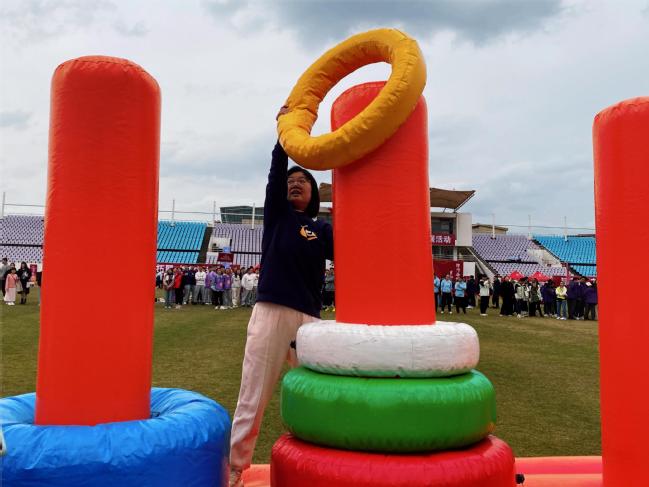 此次辅导员团队拓展活动设有“一鼓作气”“万众一心”“砥砺前行”“前赴后继”“力拔山河”5个项目。活动整体设计融趣味性和竞技性于一体,综合考验了辅导员团队的精神风貌、协作意识和应变能力。