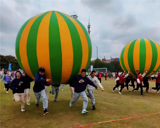 在“一鼓作气”项目中,我校队员成功地让排球在鼓面上反复跃起近200次不掉落,收获了在场其他高校辅导员雷鸣般的掌声;“砥砺前行”项目考验的是平衡感与协调性,队员们双腿跨在龙舟道具上,步调一致,砥砺前行,创下了30米11秒的好成绩;在“前赴后继”项目中,8名队员协调站位,将道具气球举起,以小组第一名的速度冲过终点线;“万众一心”是难度较高的一个项目,既考验参赛选手的体力,更考验智力和应变能力,我校四名辅导员轮流接力,克服比赛中的突发状况,最终按照赛前训练时摸索的方法完成比赛;在“力拔山河”项目中,校党委副书记刘丽也成为拔河比赛的主力军,学工部部长毛燕静带领观战辅导员们在旁边加油助威。大家团结一致、齐心协力,充分展示了我校辅导员顽强拼搏,凝心聚力的精神风貌和卓越的团队风采。