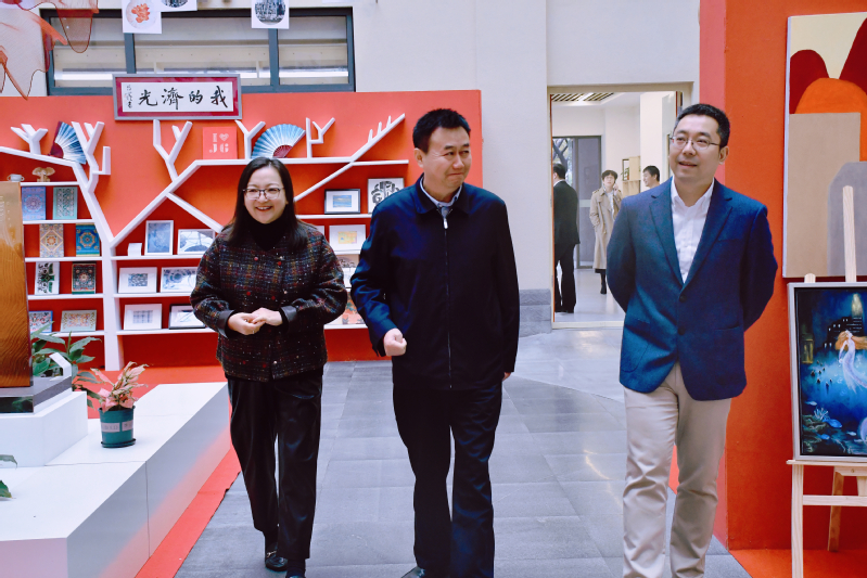 会前,与会人员一同参观了我校图书馆艺术展、学生活动中心、武装部退伍军人事务站。我校是宝山区首家设立退役军人服务站的高校,学校积极引导他们在大学生优质兵员预征预储、国防教育、志愿服务、红色宣讲中发挥积极作用,畅通退役大学生士兵就业创业“最后一公里”。