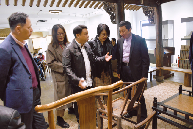 与会人员对我校施工现场实景园区、汽车技术实训基地、助产专业虚拟仿真实训基地、数字化商务运营管理实训基地、木工大师工作室、校史馆等校园实践育人场所进行了现场调研指导,前往我校校外实训基地“尚工坊”进行调研参观。“尚工坊”是我校校企共建实训核心基地之一,多年来,经济管理学院、设计创意学院与尚工坊联合,开展了高质量、多维度、全方位的密切合作,通过校企平台共建、人才共育、资源共享,实现了协同发展。尚工坊董事长邱俊带领大家参观了园区建设、现场体验了中国古代木构搭建过程、感受徽州民居的营造技艺和中华优秀传统文化。