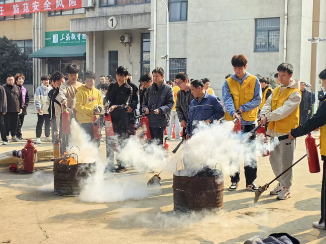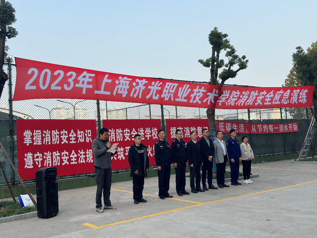 11月24日,王云飞副校长带领杨浦管委会联合校区两个学院,组织了杨浦校区学生、消防维保单位、宿管、食堂等工作人员开展了2023年秋冬消防演练与灭火器使用学习。