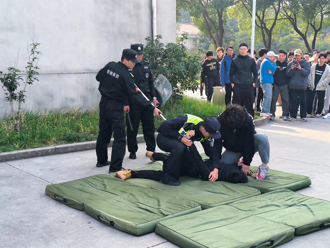 为深入学习贯彻习近平总书记关于应急管理重要论述,增加师生忧患意识,普及应急安全常识,提高师生应急救援技能和逃生避险能力,创建安全平安校园,我校宝山校区于11月23日在1号宿舍楼下举行了消防安全应急演练。市教委后保处副处长黄峰、宝山区消防救援支队队长郑楚钢、宝山区杨行镇派出所副所长曹政、宝山区反恐支队张华、杨行镇政府安全办黄佳毅莅临现场指导,学校党委书记姜富明、副校长王云飞、后保处、学生处相关人员参与本次演练。