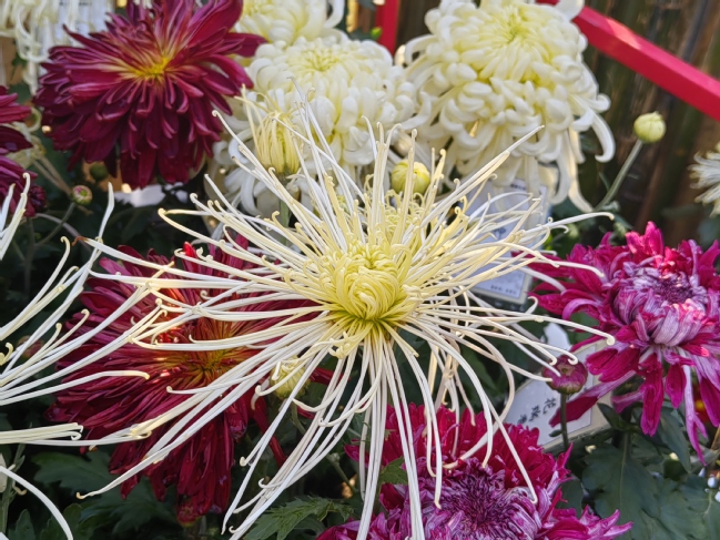 大家来到上海大学校园内的2023菊展,欣赏到了秋天菊花的美丽画卷。五彩斑斓的菊花在阳光的映照下美不胜收,令人陶醉;“勇立潮头”“山川锦绣”等一组组大型菊花造型则展现了一股进取不息的精神。同学们沉浸在这片花海之中,感受菊花在秋日里的傲霜怒放。