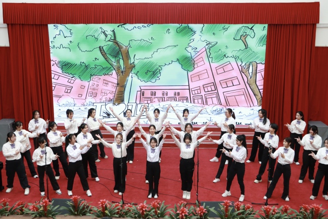本次歌会由7个学院的组成的7支合唱队经历了一个多月的集体排练,倾情演绎,呈现出较高的艺术水准。人居环境与建筑设计学院合唱队《星辰大海》、建筑工程学院合唱队《如愿》、设计创意学院合唱队《我爱你中国》、经济管理学院合唱队《有我》、学前教育学院合唱队《Try everything》、护理学院合唱队《骄傲的少年》、人工智能学院合唱队《半生雪》相继献唱,学生们动情的演唱,时而嘹亮、时而舒缓的歌声回荡在学生活动中心中庭,为全场观众呈现了一场精心编排的视听盛宴,也让大家感受到歌曲背后的家国情怀和美好希冀。
