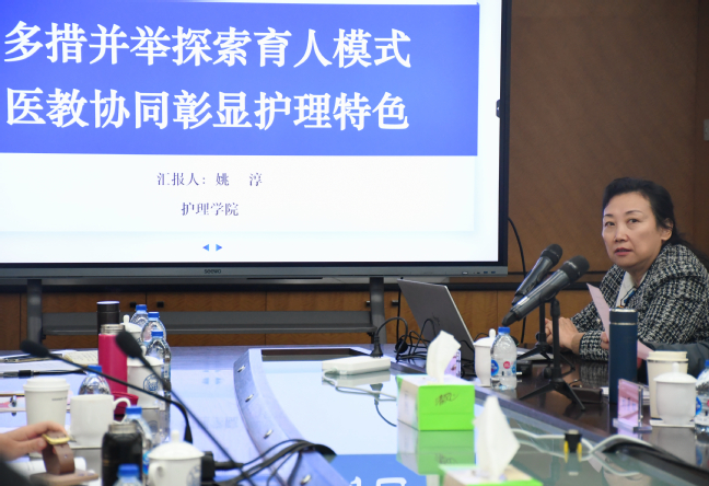 人居环境与建筑设计学院院长岳华以“高质量党建引领高质量发展——党建业务双融双促,创建高水平专业群”为题,设计创意学院院长阴佳以“集智蕴能·着眼未来”为题,学前教育学院院长方慧以“依托专业优势 多维实践育人 助推学院高质量发展”为题,护理学院常务副院长姚淳以“多措并举探索育人模式 医教协同彰显护理特色”为题,分别汇报了各二级学院党建工作、专业建设、“三全育人”工作、教育教学、美育工作等方面的成效和亮点。