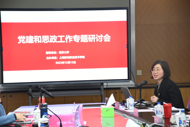 12月15日下午,党建和思政工作专题研讨会举行。校党委书记姜富明、副书记刘丽,同济大学党委常委、组织部部长吴利瑞,同济大学嘉定校区党工委副书记吴振财出席了会议,各相关职能部处负责人和嘉定校区二级学院党委书记,我校各二级学院党政负责人、相关职能部门负责人、2023年“民创计划”项目各子项目负责人共同参会。会议由校党委书记姜富明主持。