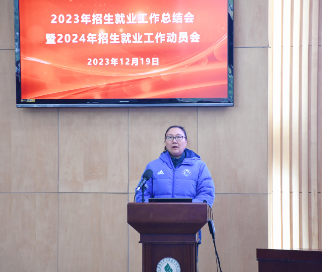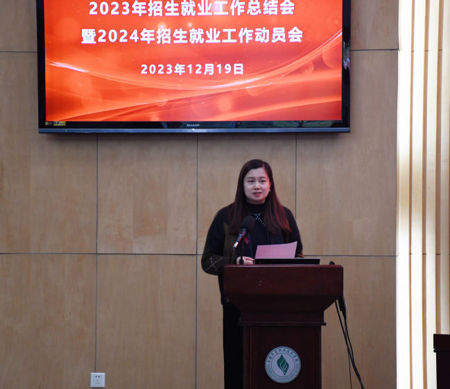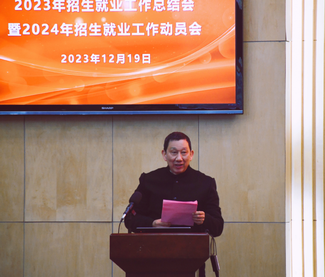 胡展飞校长对2023年招生就业工作取得的成绩给予了高度肯定,对2024年招生就业工作进行了部署动员。胡展飞校长对2024年的招生工作提出三点要求:一要坚持立德树人的根本任务,树立“战略思维”;二要坚持招生工作整体性、全面性、联动性,强化“系统思维”,继续推进“院、校”两级招生联动机制;三要坚持招生宣传常态化、多样化、专家化,建立“创新思维”。对2024年的就业工作,胡校长也提出三点要求:一要积极拓展就业渠道,加强校企合作,促进实习就业无缝衔接;二要继续做好就业困难重点群体的就业帮扶工作,做好离校未就业毕业生不断线服务;三要认真做好就业跟踪调查工作,充分发挥就业大数据对动态调整专业设置,对招生计划和人才培养方案起到推动和支持作用。