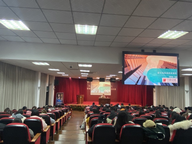 为了让学生更好地参与比赛,并有优异的表现和体验,近期,在中国银行的大力支持下,特邀万联证券股份有限公司华东区首席讲师石超老师作为主讲嘉宾,在开赛前面向经管学院大一、大二学生600余人开展赛前系列讲座。在石老师深入浅出、妙趣横生的讲课中,同学们受益匪浅。