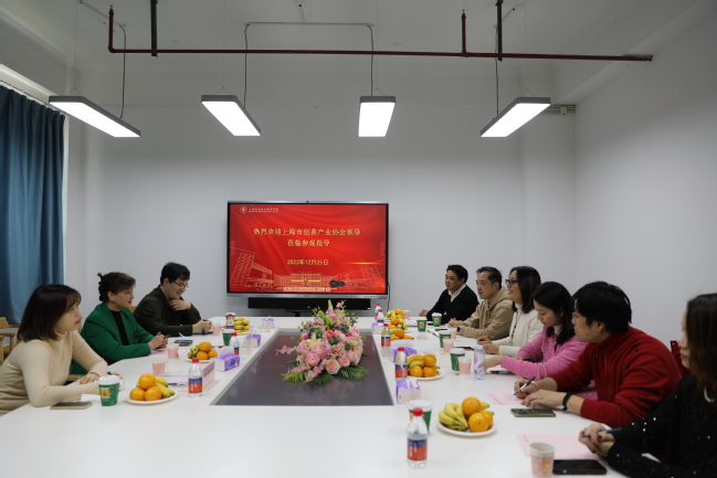 12月25日下午,上海市创意产业协会谭陈虹执行会长、协会办公室主任陶弢、会员服务部副部长施梦飞来我校经济管理学院开展调研交流活动。经济管理学院院长张迺英、副院长林俊、继续教育学院院长贝佳毅、创意设计学院副院长潘思佳、驻校企业尚工坊总经理邱俊和工商管理专业主任巢莹莹参加了交流会。