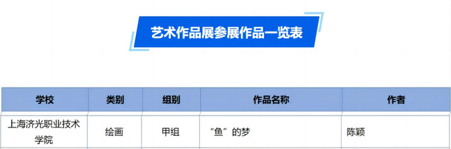 80件在市级评审中择优选出的学生优秀作品参加本次现场展览,这些作品较为全面地反映了本市高校在艺术教育及大学生美育工作中的阶段性成果,展品形式多样,涵盖绘画、书法篆刻、摄影、设计、微电影等视觉艺术领域的主流样式,是上海高校艺术教育的一次实践盛会。我校2022级学前教育5班陈颖同学创作的艺术作品《“鱼”的梦》本次也入围参展上海高校大艺展。