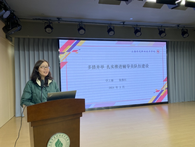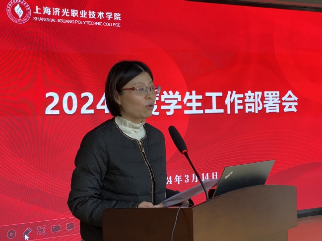 3月14日上午,我校2024年度学生工作部署会在杨浦校区会议室召开,校党委副书记刘丽出席了会议,学工部、校团委负责人,及各二级学院党总支、直属党支部书记、全体专兼职辅导员等参加会议。会议由学工部部长毛燕静主持。