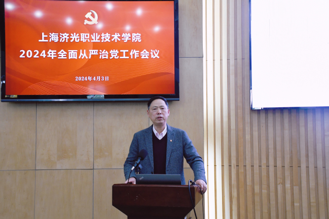 4月3日,学校在圆形会议室召开2024年全面从严治党工作会议,深入学习贯彻二十届中央纪委三次全会精神,深刻领悟习近平总书记关于党的自我革命的重要思想,进一步贯彻落实上级关于全面从严治党的决策部署,推动全面从严治党向纵深发展,切实担负起管党治党的政治责任,总结过去一年学校全面从严治党工作,研究部署2024年重点任务。校领导、两委委员、全体党委理论中心组成员、全体中层干部、各基层党支部书记、辅导员、主要职能部门工作人员及校党外代表人士等出席了本次大会。会议由校党委副书记、纪委书记刘丽主持。
