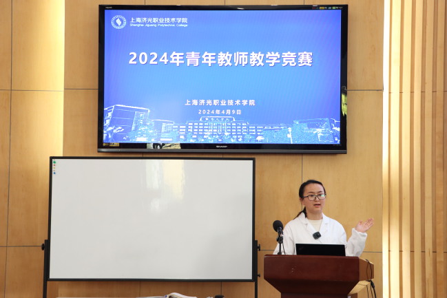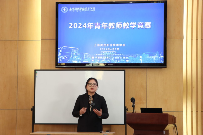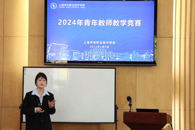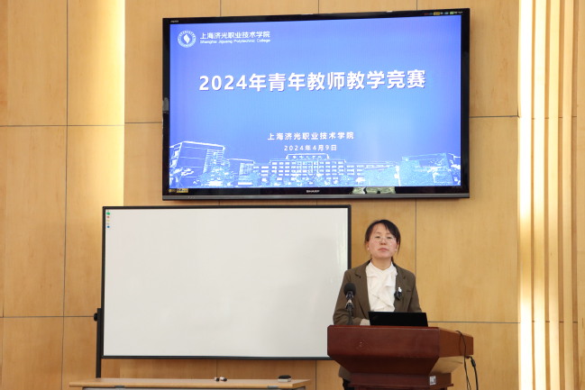 学校2024年青年教师教学竞赛复赛规则参照上海高校青年教师教学竞赛的评分标准和程序进行设置,每位选手抽签决定上场顺序及教学内容,在准备室准备20分钟后进入课堂教学展示、教学反思、专家提问三个环节,专家组针对教学内容、教学组织、语言教态、教学特色、教学反思五个方面进行综合评判。整个竞赛环节紧张有序、科学严谨,现场氛围热烈、精彩纷呈。