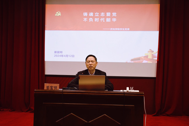姜富明书记以《铸魂立志爱党 不负时代韶华》为题,围绕“学习贯彻二十大”“传承五四爱国精神”“人要敢做梦勇追梦”“人要肯奋斗能吃苦”“忠诚爱党不负韶华”五个方面展开阐释,希望全体培训班学员能够把党的初心使命铭刻于心,扣好人生第一粒扣子,铸魂立志爱党,不负时代韶华,希望全体学员能够通过党校学习,加深对党的基本知识、基本理论的理解与把握,深刻领悟“两个确立”的决定性意义,增强“四个意识”、坚定“四个自信”、坚决做到“两个维护”,为保证发展党员质量奠定良好的基础。