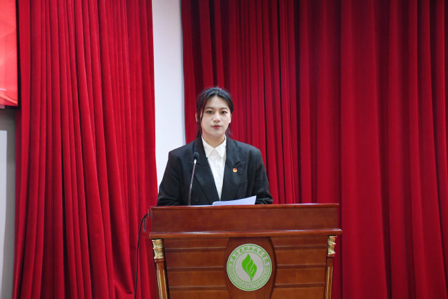 开班典礼上,经济管理学院张海婷同学代表全体学员进行了发言。她表示,全体学员将以饱满的热情和严谨的态度参加学习培训,坚持不懈用习近平新时代中国特色社会主义思想凝心铸魂,做到理论与实践相结合。