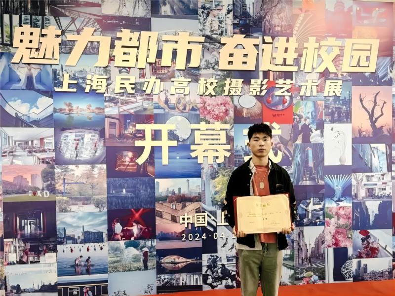 近日,“魅力都市,奋进校园”上海民办高校摄影艺术展在张江当代艺术馆隆重开幕,开幕式上宣布了本次上海民办高校摄影比赛获奖者名单,并进行了隆重的颁奖仪式。我校人居环境与建筑设计学院2022级建筑设计1班的王吉川同学凭借一组以军训为主题的照片集荣获一等奖。