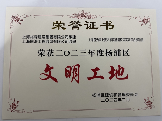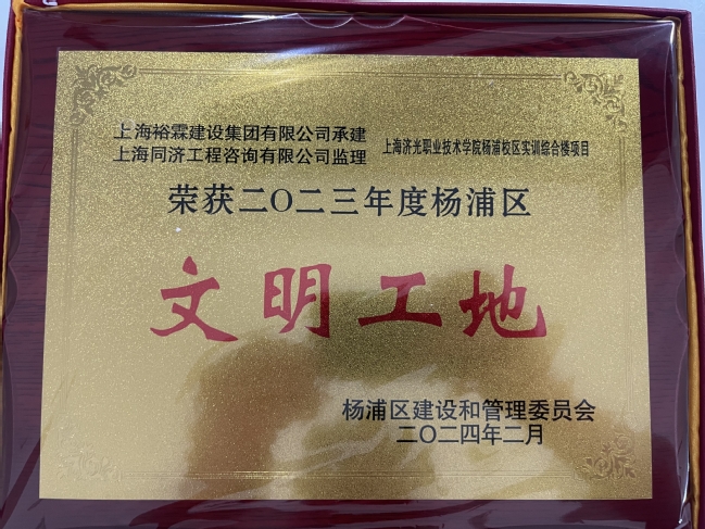 近日,我校杨浦校区实训综合楼项目分别获得“2023年度杨浦区优质结构”和 “2023年度杨浦区文明工地”称号。