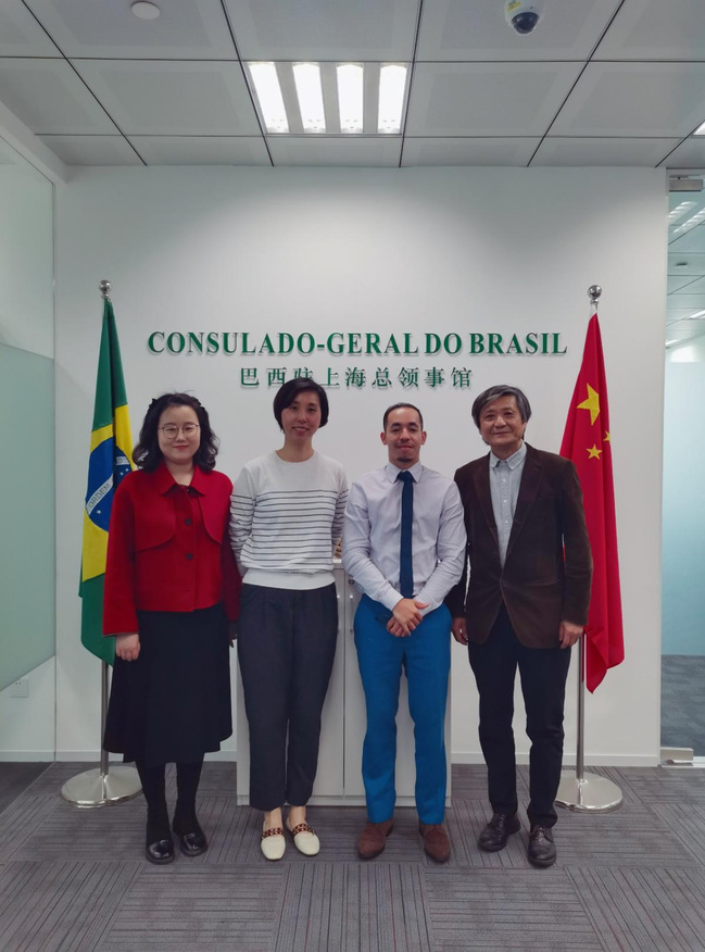 4月18日,我校设计创意学院教师团队在阴佳院长带领下,受邀前往巴西驻上海总领事馆。今年是中巴建交50周年,为筹备这一庆祝活动,双方就“纪念中巴五十周年徽章设计”和“共绘中巴友谊桥”的设计与文化交流活动展开进行了深入探讨。活动现场气氛热烈,双方进行了友好的交流与互动。