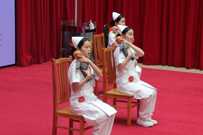 此次护理礼仪风貌大赛以班级为单位,由76名参赛选手组成10支参赛队。在比赛过程中,选手们身着整齐的护士服,通过情景演绎、技能操作等形式,以优雅的姿态、自信的笑容和专业的技能全面展示了护理礼仪、沟通技巧及临床操作等技能。评委就标准站姿、标准行姿、标准蹲姿、标准坐姿、持病历夹、端治疗盘、推治疗车等礼仪内容进行评分。最终角逐出一等奖4名、二等奖7名、三等奖11名及优胜奖14名。