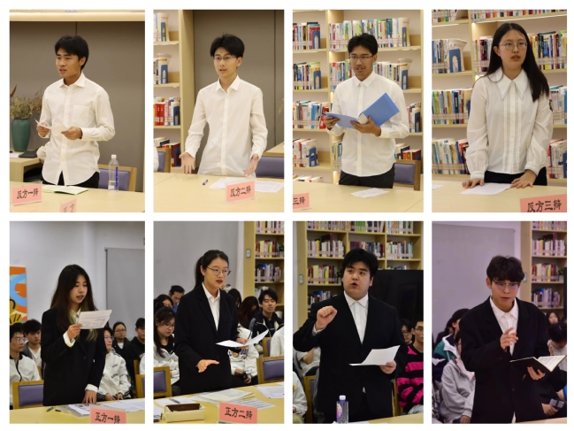 决赛于4月28日晚在宝山校区图书馆专升本自习室举行。正反双方围绕“短视频平台的火爆对社会文化的影响是正面的还是负面的”这一辩题展开了激烈的辩论。在赛场上,双方辩手你来我往,唇枪舌剑,每一次交锋都充满了智慧和激情。观众们在聆听选手们的精彩发言时,不时爆发出热烈的掌声和欢呼声。经过评委们的慎重评选,人工智能学院代表队凭借其出色的表现最终摘得桂冠。