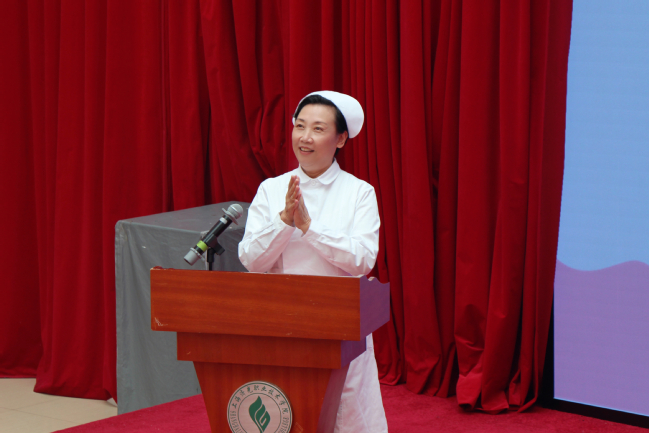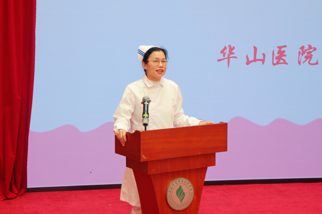 护理学院常务副院长姚淳致开幕词,她代表护理学院向奉献护理教育事业的教师们致以亲切的问候,给即将走向临床实习的护理学子们送上诚挚的祝福。希望同学们作为护理行业的未来和希望,要学会感恩、勇于承担、乐于学习,刻苦训练专业技能,为为一名优秀的护理人才打下坚实的基础。