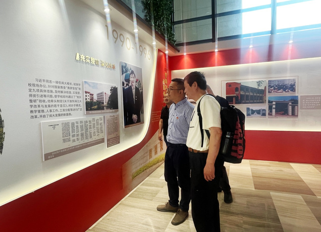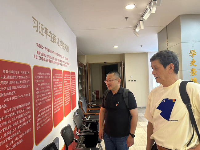 我校领导、教师一行在闽江学院校史馆共同开展主题教育党建学习活动。了解了习近平总书记在福建工作期间推动闽江职业大学发展及福州地区大学城建设的生动历程,重温了习近平总书记提出的职业院校办学理念,并认真学习了2021年习近平总书记来闽江学院考察调研时重要讲话精神,进一步领会习近平总书记对教育一以贯之的高度重视和要求。