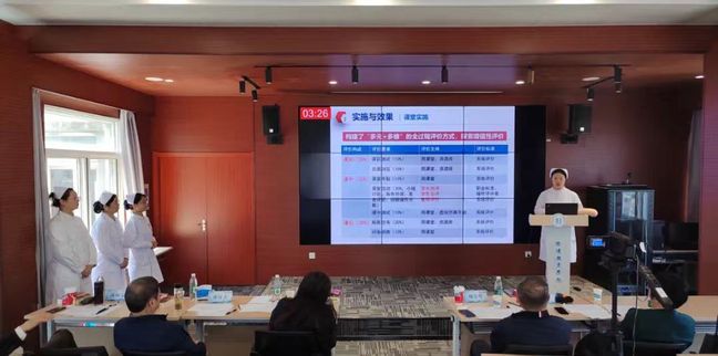 本次比赛是对上海高职高专医药健康类教师教学能力的一次全面检验。现场赛分为三个环节:针对教学实施报告中主要内容和创新特色进行8分钟讲述环节、团队教师12-16分钟的现场教学展示环节、现场答辩环节。各专家评委就参赛教师教学内容、教学设计、教学实施、教学评价、教学反思等多维度进行全面的评价。护理学院教学团队以先进的教学理念、丰富的教学内容、生动的教学方式和有效的互动,赢得了评委和观众的高度评价。