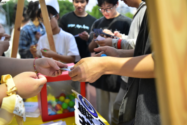 除了“表白墙”,活动现场还设置了红色歌曲接龙、党史答题挑战、探寻祖国大好河山等趣味打卡环节。通过这些趣味活动,济光学子们完成任务点的打卡,即可免费兑换“能量补充快乐礼包”——爆米花。在完成520米、990米、1100米夜跑距离的济光学子也在兑奖处换取活动大礼包和精美奖品一份。