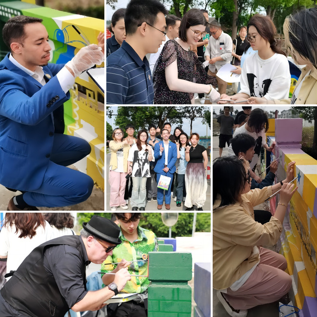 在设计介绍活动结束之后的互动环节中,巴西小朋友还为大家带来了用葡语和中文朗诵的诗词节目,中外师生则分别为嘉宾表演了巴西战舞和太极拳。午间休息时段,巴西驻沪领事馆邀请中外嘉宾和济光师生品尝了巴西特色午餐。下午的活动在上海市松江区叶榭镇东勤村桥绘现场展开,中外嘉宾和济光师生一起在桥上绘制着各种图案以表达喜悦心情,给本次活动增添了更加欢快的色彩和温馨的交流氛围。