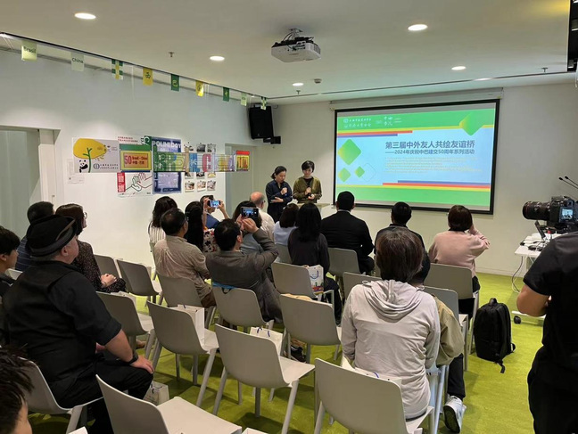 5月25日,由上海市欧美同学会主办,同济大学党委统战部、上海市欧美同学会同济大学分会、同济大学中西学院、上海济光职业技术学院设计创意学院、上海松江区叶榭镇政府共同承办的2024年庆祝中巴(巴西)建交五十周年系列活动——中外友人共绘“中巴友谊桥”和中巴建交50周年纪念徽章发布活动在同济大学运筹楼成功举办。 活动邀请到了巴西驻沪总领事Augusto Pestana(奥古斯托)大使先生,葡萄牙驻沪总领事Sílvia Inácio(夏思雅)女士、巴西领馆科技处主管José Roberto de Andrade Filho(范天阳)先生,巴西领馆公共外交处主管Henrique Cavalcante(刘亨利)先生,上海市欧美同学会第十一届理事、同济大学分会副秘书长俞吉恩女士,上海市欧美同学会青委会常务委员马圣楠女士,同济大学建筑与城市规划学院教学创新基地副主任王珂副教授。我校设计创意学院王云霞、邓佳睿、孙俪和杨奕彤老师及学生共计20多人参加了活动。此次活动由我校孙俪老师主持。