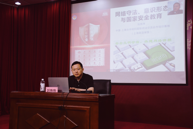 刘伟伟以《网络守法、意识形态与国家安全》为题,用鲜活且富有教育意义的案例为引,生动阐述了网络中的不良行为,深刻剖析了网络意识形态斗争形势与风险防范,并着重强调了总体国家安全观的重要性。他呼吁同学们,要养成良好的上网习惯和行为,掌握基本的避险知识。他指出,各类网络违法行为离我们并不远,需要注意防范网络诈骗、警惕网络钓鱼;谨慎结交网友、学会辨别真伪;保护个人隐私、尊重他人隐私。
