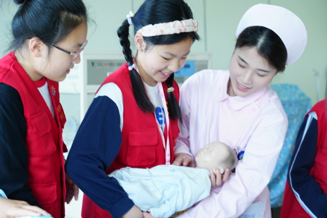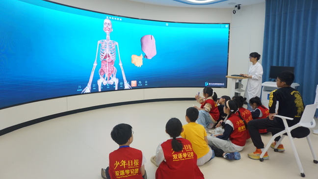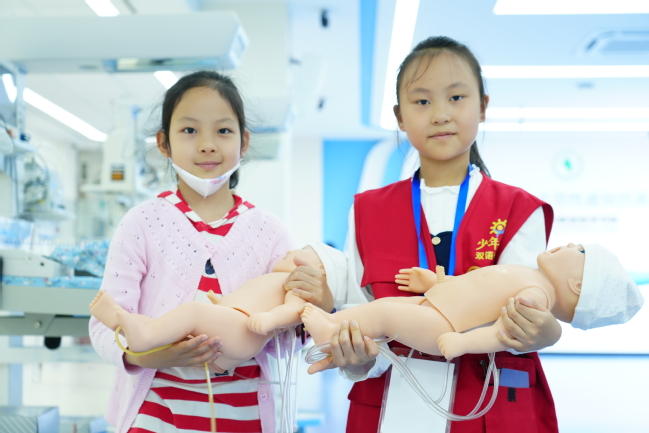 “奇妙的生命之旅”体验项目由护理学院护理专业承办。通过护理学院的老师讲解和3D解剖软件的操作,知悉人体的八大系统及结构分布,从而揭开人体的奥秘,并科普了一些日常生活中常见疾病预防及注意事项,帮助学生们认识身体健康的重要性;通过MR软件体验护理操作,身临其境地体验护理操作的环境和流程;通过新生儿沐浴及抚触使参与者了解婴幼儿沐浴、抚触的基本步骤,同时也加强其对父母的感恩之心;通过让学生体验孕期妈妈怀胎十月的感受,知晓十个月在妈妈的“小房子”里的成长史;通过虚拟仿真技术,运用心肺复苏模拟人来体验心肺复苏流程,让同学们知道在关键时刻能够迅速采取最有效、最正确的急救措施,挽救生命以及正确认识生命的起源和发展,对生命的尊重和爱护,对于如何挽救生命也有了新的领悟。该项目充分整合我校“上海市助产专业示范性虚拟仿真实训基地”的资源,将知识与趣味性完美融合。